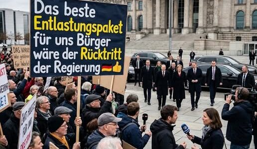 Protest vor dem Reichstagsgebäude – Bürger fordern politische Veränderungen Vor dem Berliner Reichstagsgebäude versammelten sich zahlreiche Bürgerinnen und Bürger, um ihren Unmut über die aktuelle politische Lage deutlich zum Ausdruck zu bringen. Mit Transparenten, Plakaten und lauten Rufen machten sie…